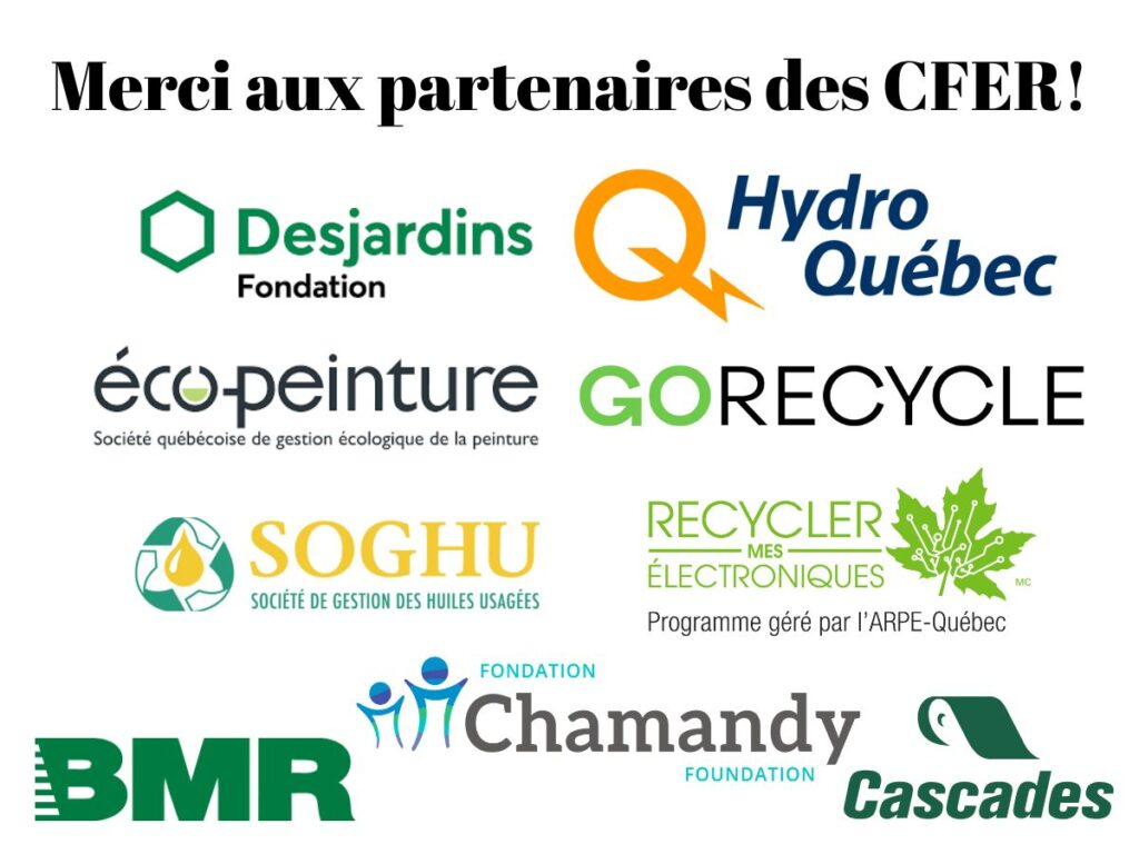 En soutien aux activités du Réseau CFER: Éco-Peinture, SOGHU, ARPE-Québec, GoRecycle, Hydro-Québec.